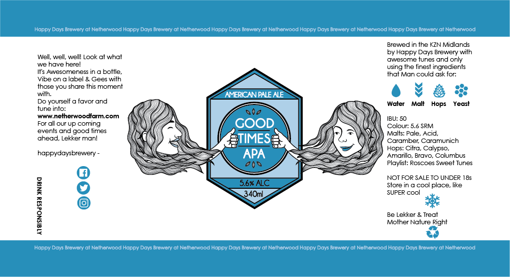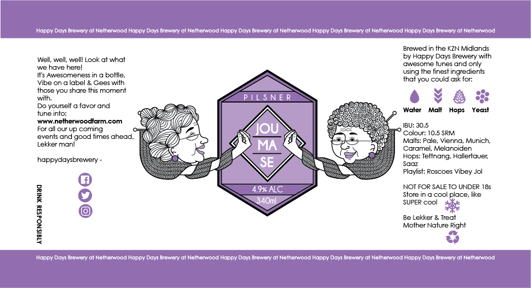 Happy Days Brewery is a pub in Nottingham Road, South Africa. I was commissioned to design their beer labels as well as other assets like merchandise and branding.